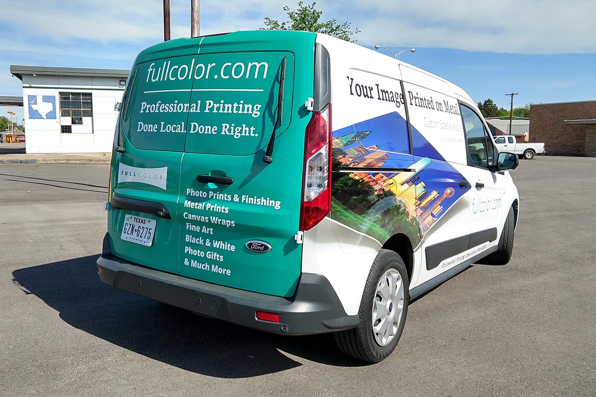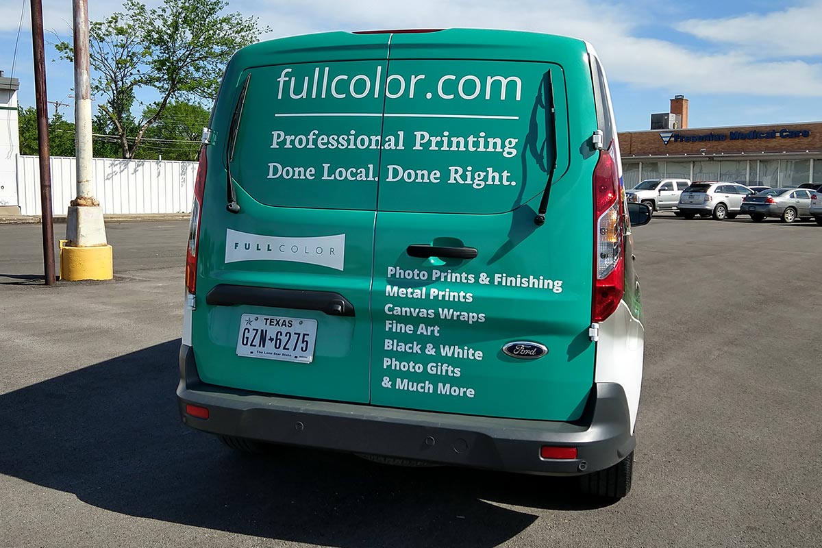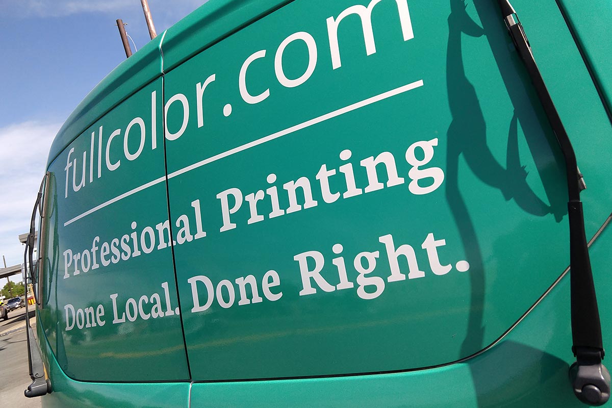 When Full Color purchased a new delivery van for running prints and supplies to local customers, we knew it was time to utilize the van as free advertisement while driving around town. The goal of using the van as a marketing piece was to drive viewers to Full Color's website where they can create and purchase customizable printed products.