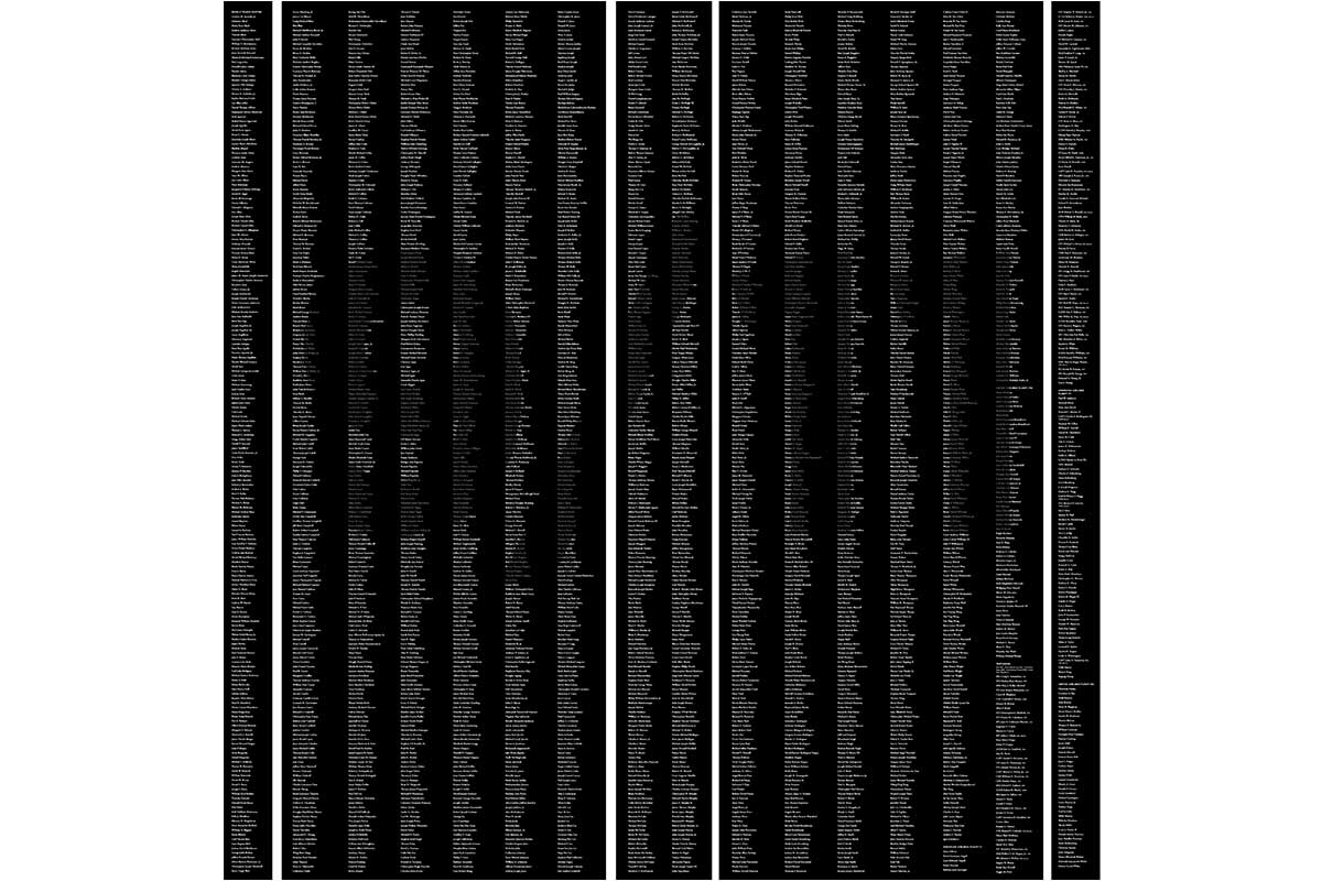 For the September 15, 2016 dedication of George W. Bush Elementary in Wylie, Texas, I was given the opportunity to help create a display honoring the 3,023 people who lost their lives on September 11, 2001, as well as a set of metal prints bearing the president's quote from the National Day of Prayer and Rememberance Service on September 14, 2001.