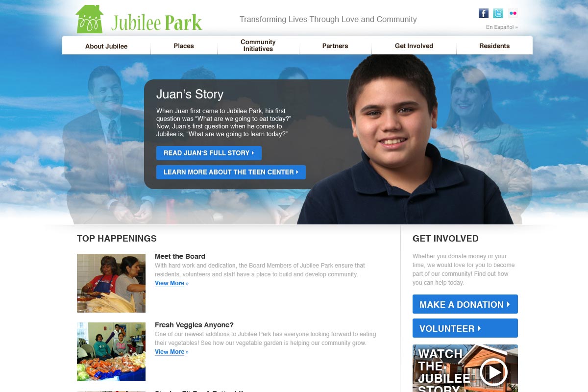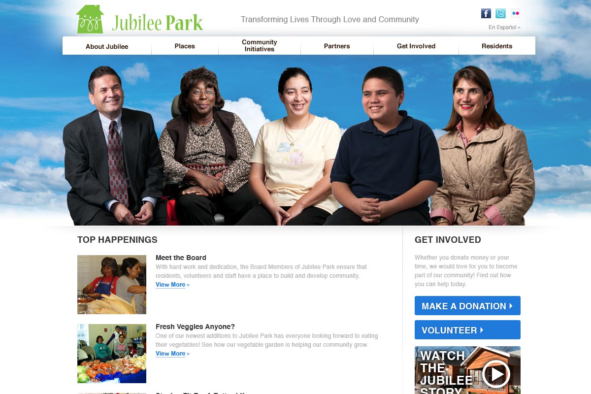 We met with Jubilee Park (4 hrs), developed a design (5-20 hrs), and built a sharp website with the help of the GiveCamp team (72 hrs). We also set up a photoshoot for the cover stories on the website highlighting actual members of the Jubilee Park community.
